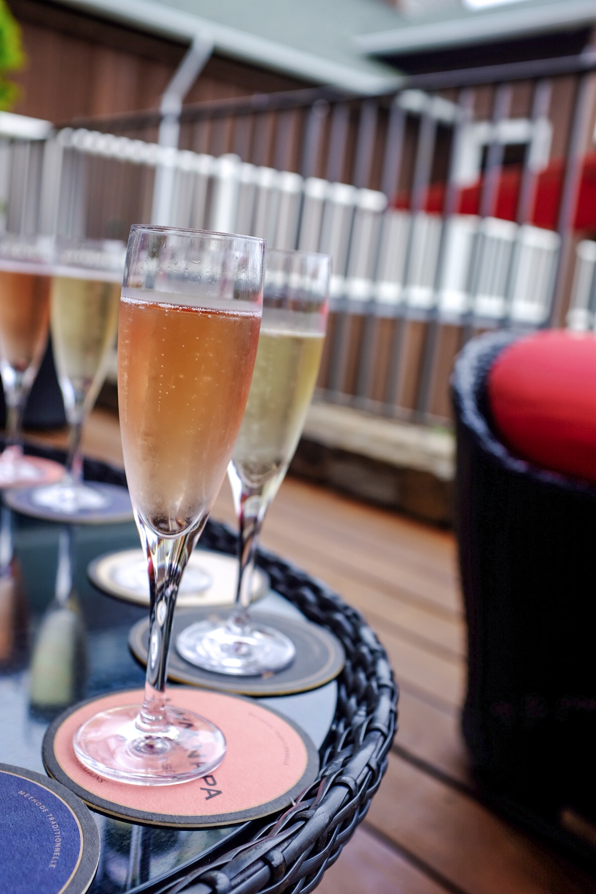 We pulled into the parking lot of Mumm Napa around 9:55, and by 10am, were seated on the porch with a row of sparkling wines lined up for tasting. I mean, CHEERS y’all!! Let’s do this thing!